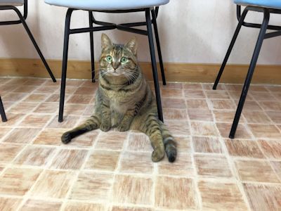 いつも診察室のドアの前で寝ていたので、診察室を出る時は踏まないようにまたいで出てましたが、今はもう・・・。